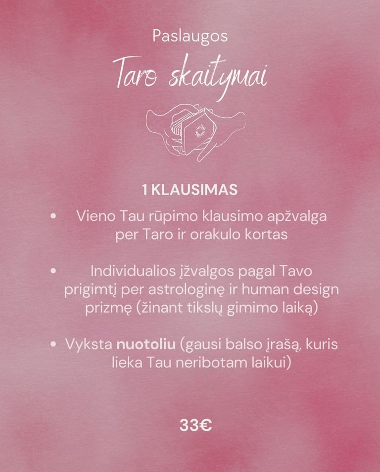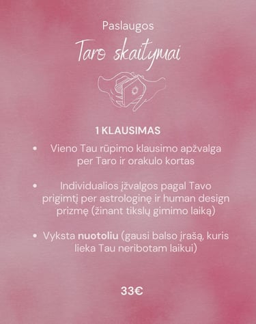 Prieš registruojantis kviečiu susipažinti su mano Taro etika ir DUK .