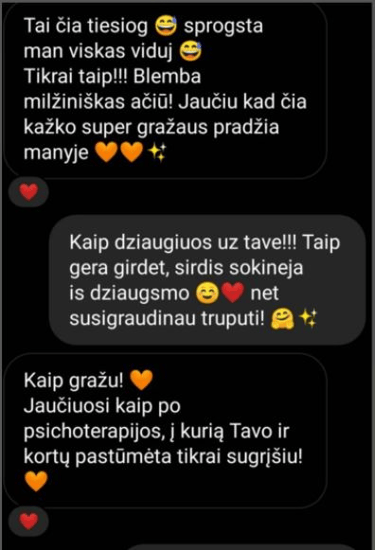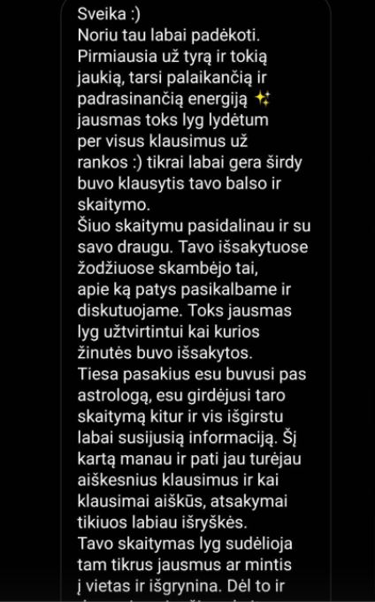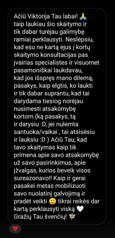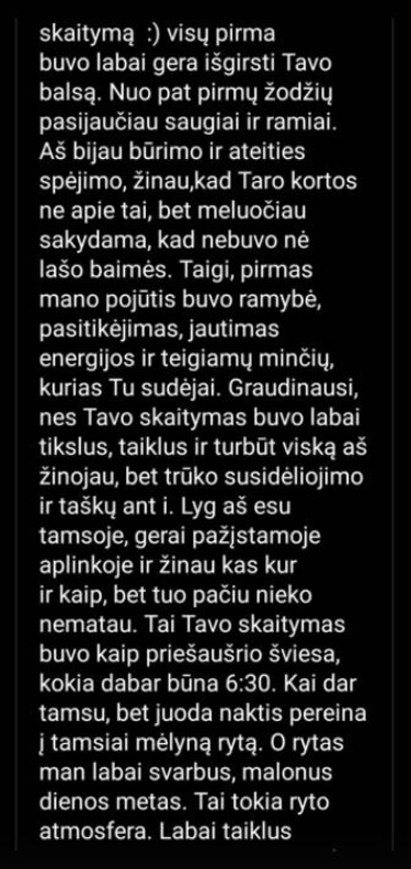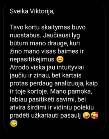 Žmonių atsiliepimai po kortų skaitymų. Visi atsiliepimai yra autentiški, nekoreguoti ir